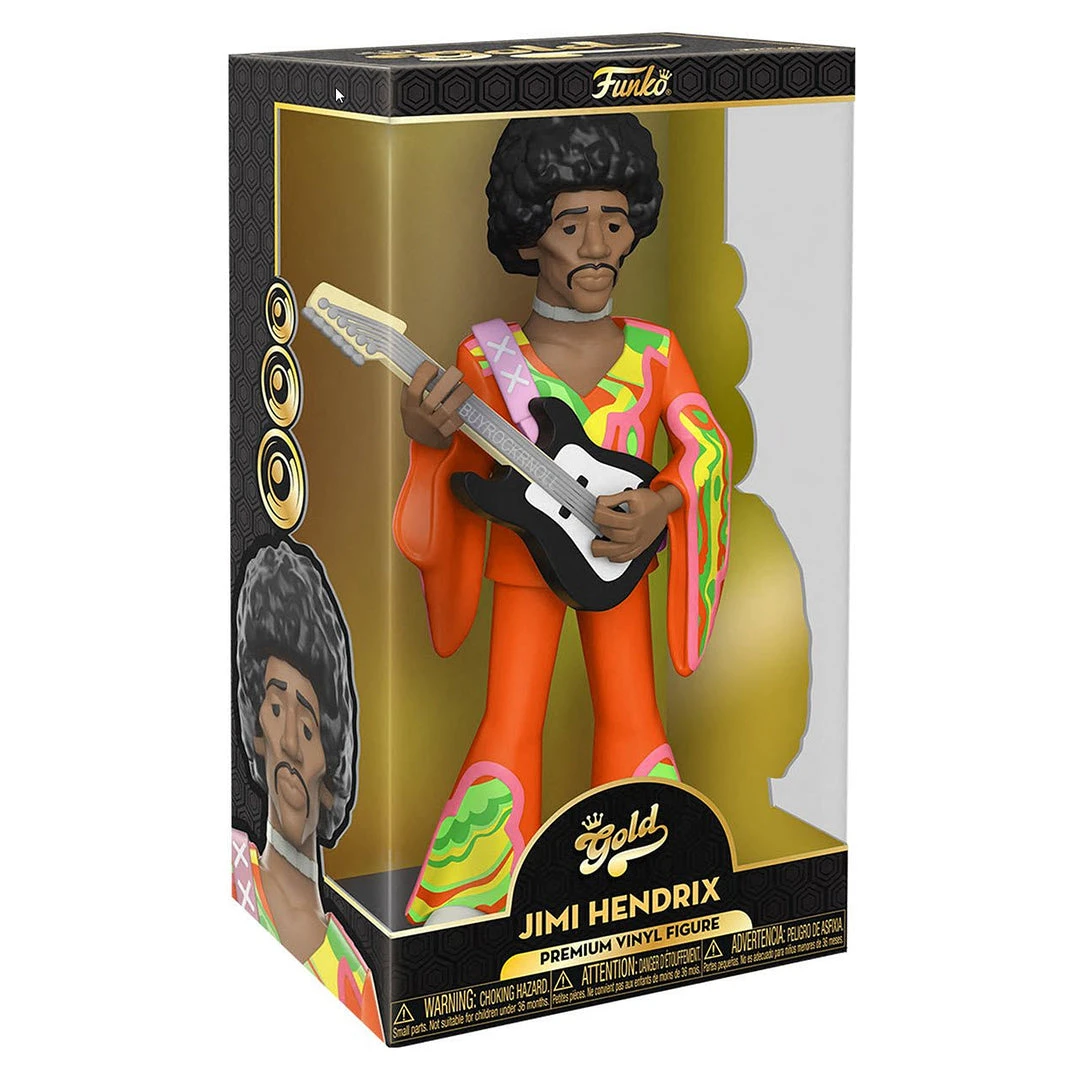 Go for GOLD in your music collection with the new Funko GOLD, premium vinyl figure of electric guitar virtuoso, Jimi Hendrix. Jimi is here to turn up the volume to 11 in your collection as this 12-inch tall collectible. Wearing his neon, psychedelic orange outfit, Jimi Hendrix is a surefire showstopper.