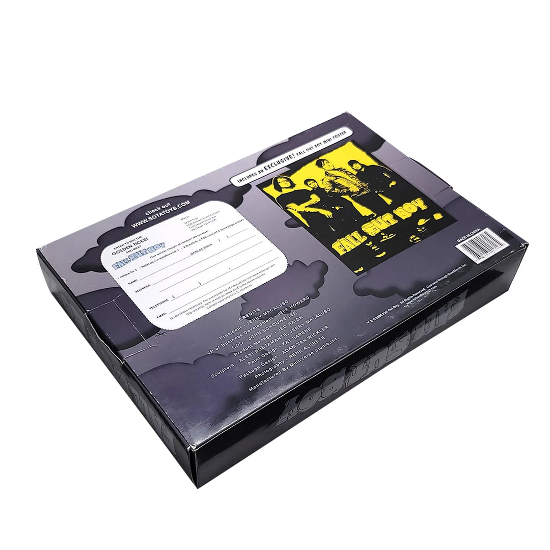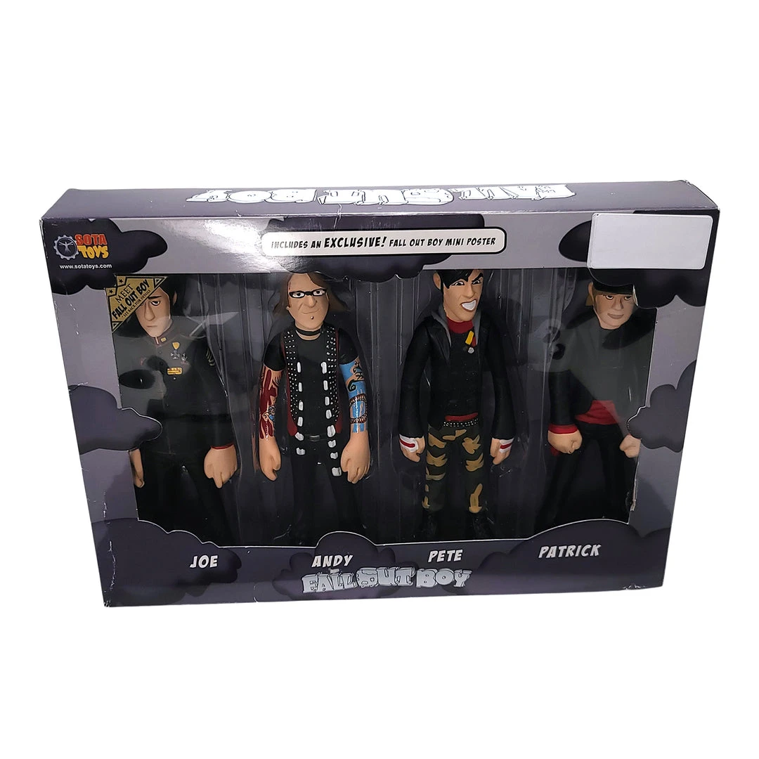 In 2006 the Fall Out Boys was the latest in a long string of rock acts to have their mugs immortalized in plastic. They are dressed in the sorta Sgt. Peppers-inspired garb the band wore on their Black Clouds and Underdogs Tour. The figures are approximately 7 inches (18cm) tall and boast swiveling necks and shoulders.