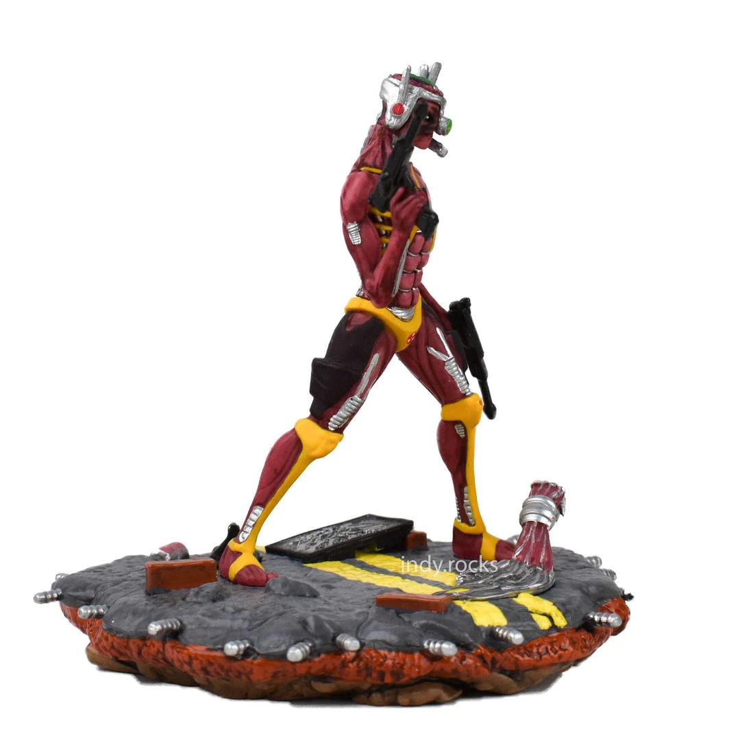 Based on the award-winning mobile RPG game Legacy of the Beast comes Cyborg Eddie. Inspired by the album ‘Somewhere in time’, this highly detailed 1:24 scale PVC figure features Eddie in a highly dynamic pose ready to deliver his bounty. This Gunner Class Figure measures about 4-inches tall and comes on a dystopian world base and is packaged in a diorama-style window