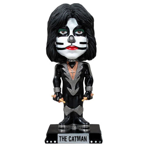 Now you can rock ‘n’ roll all night and bobble every day with this KISS Peter Criss The Catman Bobble Head! Standing approximately 7-inches tall atop a stage-themed base, this rockin’ Wacky Wobbler is loaded with details and features an awesome likeness of vocalist/rhythm guitarist Peter Criss.