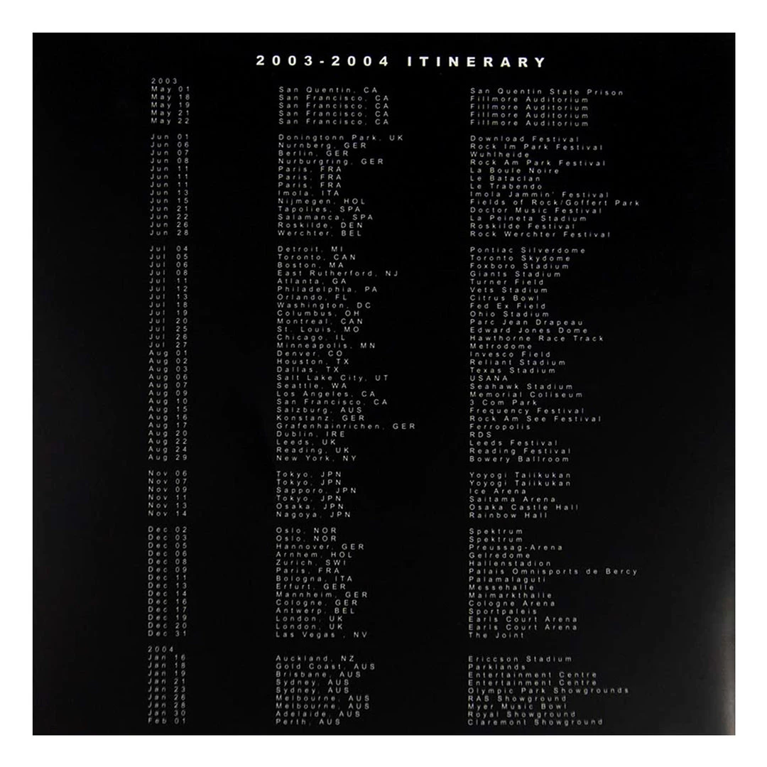 When drummer Lars Ulrich fell ill before the tour’s Download Festival appearance on June 6, 2004, an assortment of temporary fill-ins was recruited, including Dave Lombardo of Slayer, Joey Jordison of Slipknot, and Flemming Larsen, Ulrich’s drum technician.