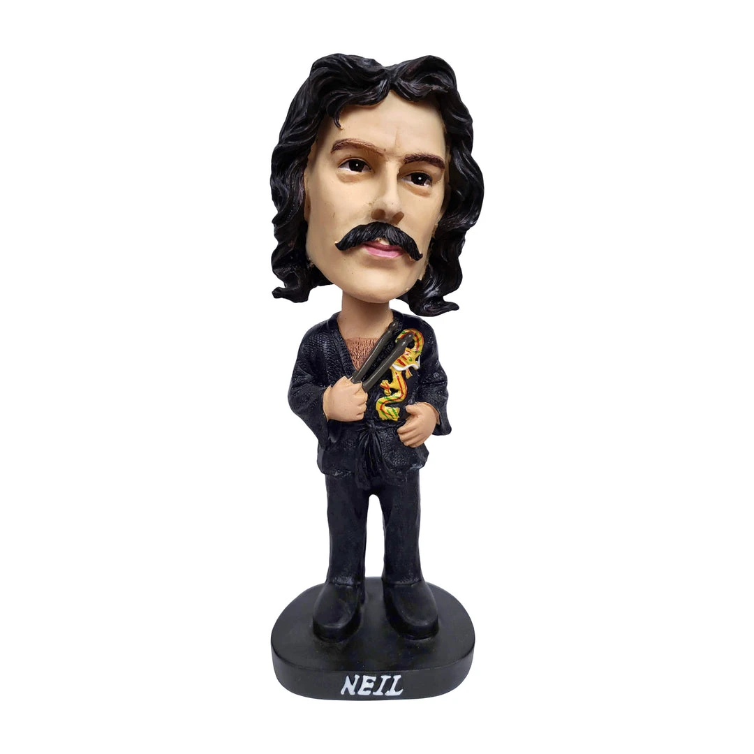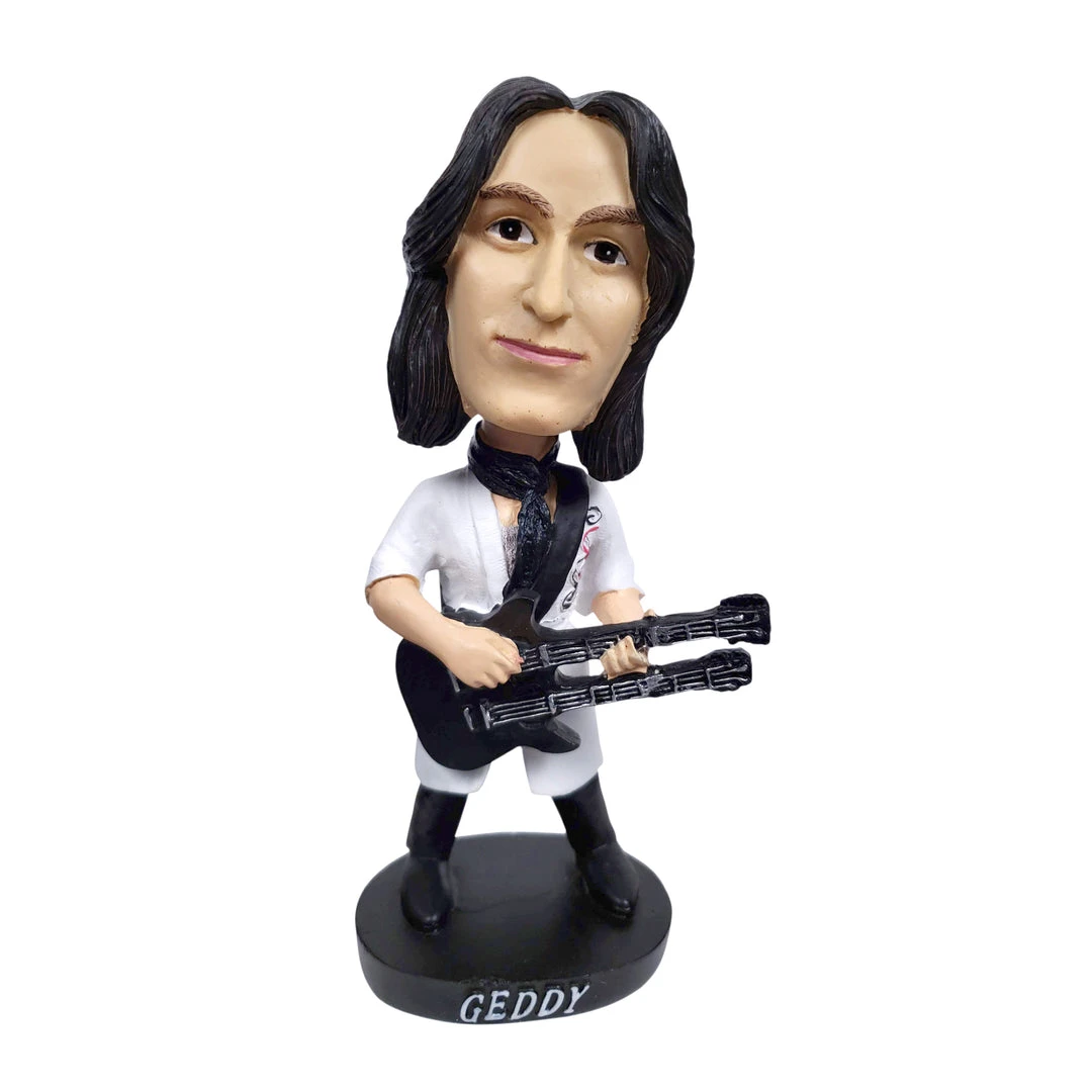These dolls are polyresin ceramic, which is the highest quality bobblehead on the market. Measuring 7″ high (approx. 18cm), these dolls have heads that bobble back and forth, kinda like seeing the guys on stage! Each set consists of three dolls (Geddy, Alex, and Neil) in a custom printed RUSH box. These were designed with a “vintage” Rush in mind, from the time when the band wore kimonos, played double-neck guitars, and Neil had the most amazing mustache in rock music. These bobbleheads are guaranteed to bring a smile to your face.