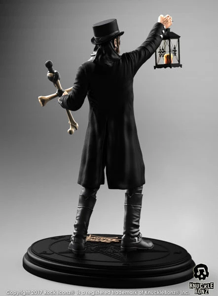The King Diamond Rock Iconz Ltd. Edition statue stands approximately 8 inches tall from the bottom of his boots to his hat. The statue base is roughly 5.5 inches in diameter.