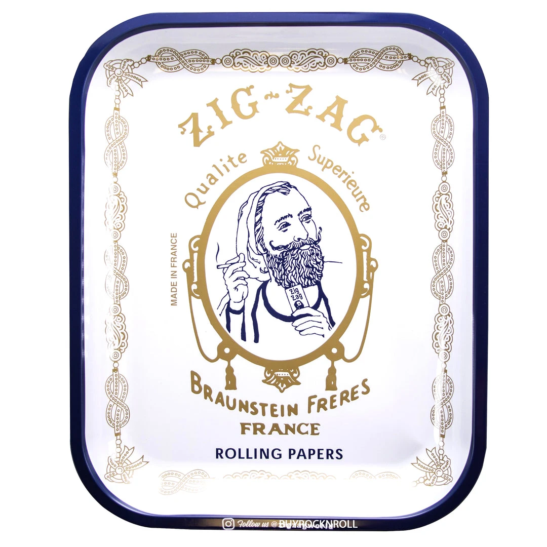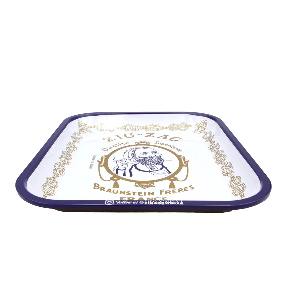 The official Zig-Zag rolling trays measure 13.4″ X 10.8″ and are made of thick tin with a smooth glossy surface, high edges, and rounded corners. Intended for tobacco use.